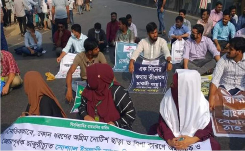 এস আলম নিয়ন্ত্রিত ব্যাংকের চাকরিচ্যুত কর্মকর্তা-কর্মচারীদের সড়ক অবরোধ