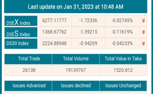 আজও পতনে শেয়ারবাজার