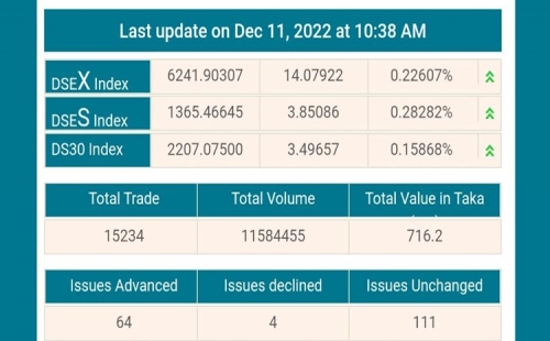 ১০ ডিসেম্বর উদ্বেগ কাটিয়ে ঊর্ধ্বমুখী শেয়ারবাজার