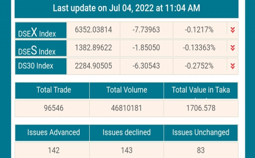 শুরুতে নিম্নমুখী শেয়ারবাজার