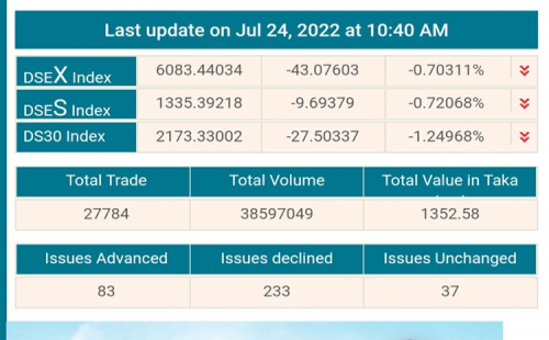 শেয়ারবাজারে ভয়াবহ দরপতন, ক্রেতা সংকটে ২৭৫ প্রতিষ্ঠান