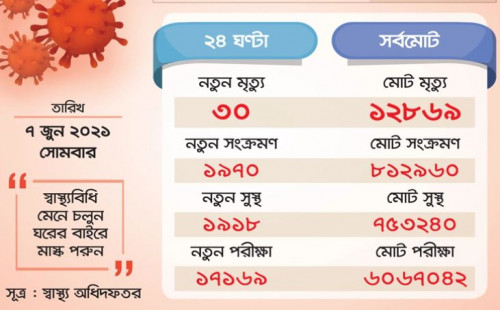 করোনায় প্রাণ গেল আরও ৩০ জনের, শনাক্ত ১৯৭০