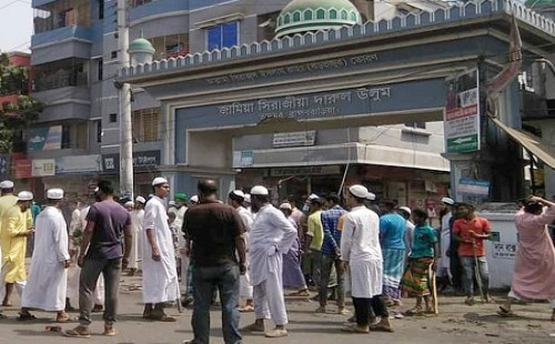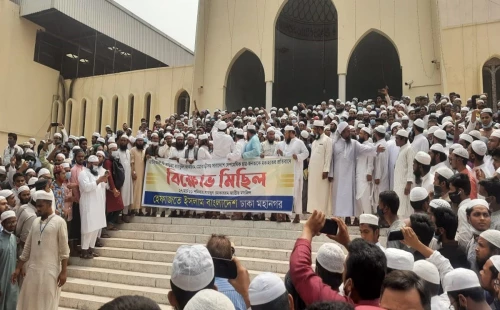 বায়তুল মোকাররমে বিক্ষোভ করছে হেফাজত