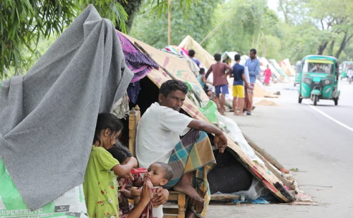 সড়কের পাশে ত্রিপলের ছাউনিতে দিন কাটছে বন্যার্তদের
