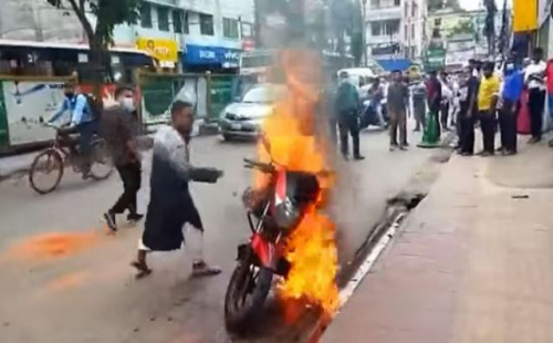 মামলা দেওয়ায় নিজের মোটরসাইকেলে আগুন দিলেন যুবক