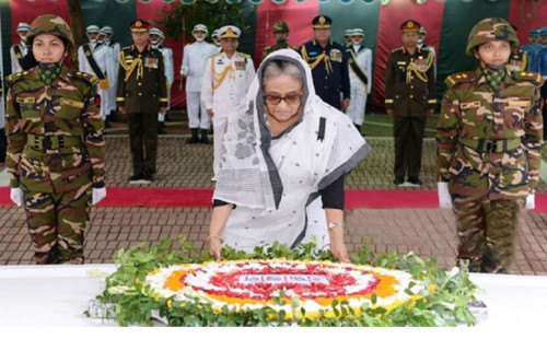 টুঙ্গিপাড়ায় বঙ্গবন্ধুর সমাধিতে প্রধানমন্ত্রীর শ্রদ্ধা