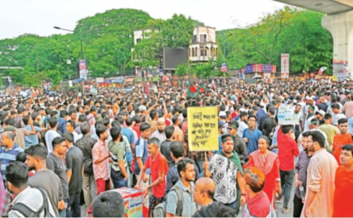 আ’লীগ নিষিদ্ধের দাবিতে টানা অবস্থান, বিক্ষোভ