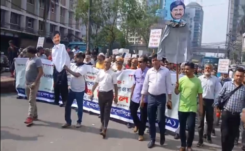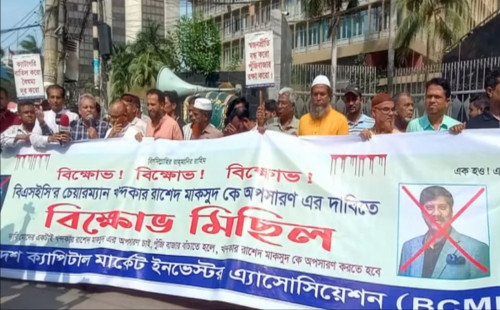 বিএসইসি চেয়ারম্যান খন্দকার রাশেদ মাকসুদের পদত্যাগ দাবিতে বিক্ষোভ